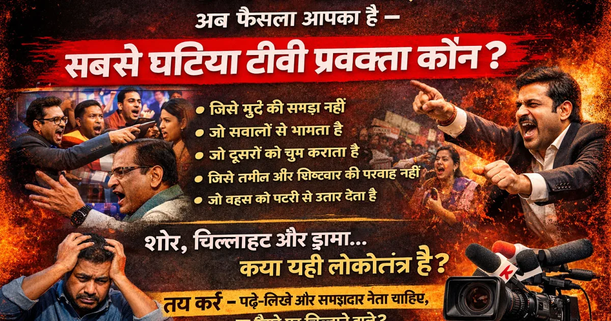 प्रिय भारतवासियों, हर रात हम टीवी खोलते हैं इस उम्मीद में कि देश के मुद्दों पर साफ और समझदार चर्चा सुनने को मिलेगी। लेकिन हमें क्या मिलता है? शोर। चिल्लाहट। तथ्यों से भागना। व्यक्तिगत हमले। कुछ प्रवक्ता ऐसे दिखाई देते हैं जिन्हें विषय की बुनियादी जानकारी तक नहीं होती। फिर भी वे पूरे आत्मविश्वास से गलत बातें दोहराते रहते हैं। सवाल पूछा जाता है कुछ और, जवाब मिलता है कुछ और। क्या यही लोकतंत्र है? क्या यही राजनीतिक समझदारी है? सबसे “घटिया” प्रवक्ता वह है — जिसे मुद्दे की समझ नहीं है जो सवालों से बचने के लिए आवाज़ ऊँची करता है जो दूसरों को...
